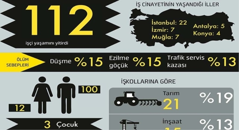 112 işçi, iş cinayetlerinde hayatını kaybetti