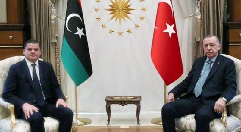 Cumhurbaşkanı Erdoğan ve Libya Millî Birlik Hükümeti Başbakanı Abdülhamid Dibeybe, Cumhurbaşkanlığı Külliyesi'nde baş başa ve heyetler arası görüşmelerinin ardından, çeşitli anlaşmaların imza törenine yapıldı.