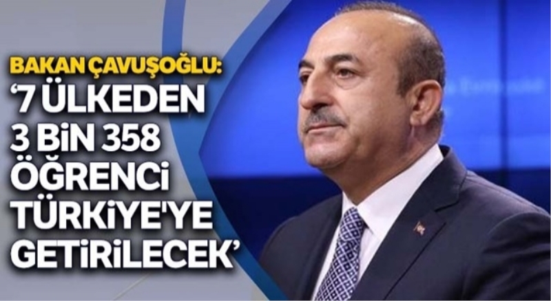 Dışişleri Bakanı Mevlüt Çavuşoğlu, 7 ülkeden 3 bin 358 öğrencinin Türkiye'ye getirilerek, Sakarya ve Samsun'daki yurtlarda karantinaya alınacaklarını söyledi.