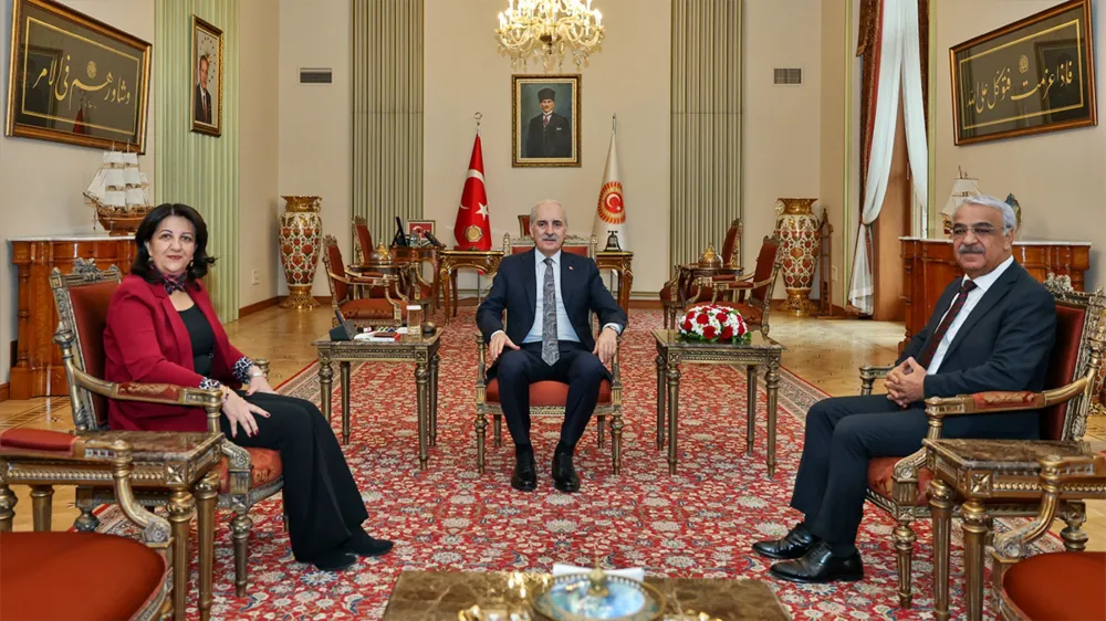 DEM Parti heyeti, Adalet Bakanı Tunç ile yapılan görüşmenin ardından TBMM Başkanı Numan Kurtulmuş’u da ziyaret etti. TBMM Başkanlığının resmi sosyal medya hesabından yapılan paylaşıma göre, Kurtulmuş, TBMM Başkanvekili Pervin Buldan ve Milletvekili Mithat Sancar’ı makamında kabul etti. Basına kapalı gerçekleşen görüşme yaklaşık 40 dakika sürdü.