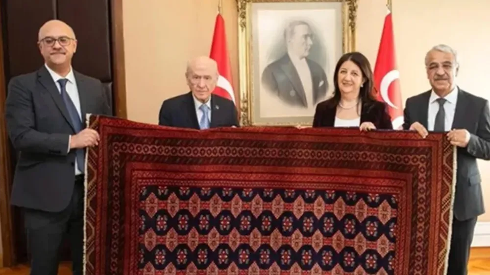 PKK lideri Abdullah Öcalan, MHP lideri Devlet Bahçeli'ye kilim hediye etti. Bahçeli, "12 Aralık 2025 tarihinde DEM Parti heyeti Meclis’te bizleri ziyaret ettiklerinde, kurucu önder Abdullah Öcalan’ın Şanlıurfa’da özel olarak dokuttuğu bir kilimi bize hediye etti'' dedi.