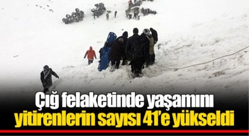 İlk gün hayatını kaybeden 5 kişiyle birlikte hayatını kaybedenlerin sayısı 38 oldu. Kurtarma çalışmaları, dün akşam yüksek çığ tehlikesi ve hava şartları nedeniyle durdurulurken, sabah saatlerinde yeniden başlatıldı. Çığ altında kalan 3 kişinin de cesedine ulaşıldı. Ölü sayısı 41'e yükseldi.