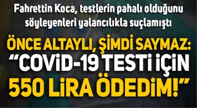 İsmail Saymaz, yeni tip koronavirüs ( Covid-19) testi için 550 lira ödediğini yazdı.