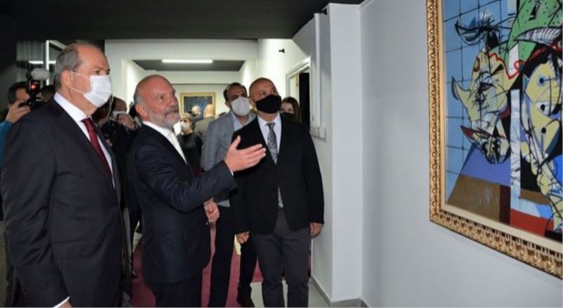Kıbrıs Modern Sanat Müzesi’nin yeni eserlerle donatılarak geçmişle gelecek arasında bir köprü kurulduğunu söyleyen Cumhurbaşkanı Ersin Tatar, “Binlerce yıllık bir tarihi olan Kıbrıs’ta bütün siyasi engellemelere rağmen ortaya konulan bu eserler, bütün dünyaya Yakın Doğu Üniversitesi Kampüsü’nden yükselen ‘biz varız, var olmaya devam edeceğiz’ haykırışı olarak görülmelidir” dedi. “Bizler sanatçı ruhluyuz, bizler evrenseliği yakalamış bir toplumuz. Kıbrıs Modern Sanat Müzesi’nin ortaya koyduğu eserler de bütün cesareti ve iradesiyle dünyaya işte bu mesajı veriyor” diyen Cumhurbaşkanı Tatar, “Bütün bu güzellikleri dünya ile paylaşabilmek, dünyalı olabilmek; bizim hakkımızın da ötesinde dünya medeniyetine katkımızdır. Bütün ambargolara, izolasyonlara rağmen, dünyadan alan değil dünyaya katkı koyan bir noktadayız” ifadesini kullandı. Cumhurbaşkanı Tatar, “Sizlerle birlikte bütün bu güzelliklerin ortaya çıkmasını sağlayan ve ilham yaratan Dr. Suat Günsel’e, bugünün Cumhurbaşkanı olarak bütün siyasiler adına ‘sizlerle ne kadar gurur duysak azdır’ demeyi de bir borç olarak görüyorum” dedi.
