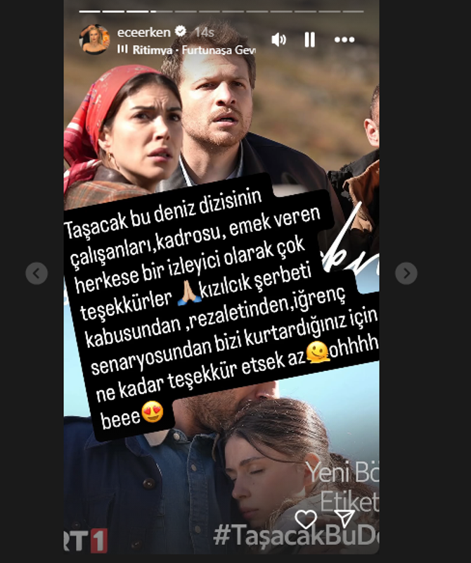 Ünlü televizyoncu Ece Erken, tarafını net bir şekilde belli etti. Instagram hesabından yaptığı paylaşımda, Taşacak Bu Deniz ekibine teşekkür eden Erken, rakip diziyi adeta yerin dibine soktu. "Taşacak Bu Deniz'in çalışanları, kadrosu ve emek veren herkese bir izleyici olarak çok teşekkürler. Kızılcık Şerbeti kabusundan, rezaletinden, iğrenç senaryosundan bizi kurtardığınız için ne kadar teşekkür etsek az. Ohhhh beee!" sözleriyle hayranlarını şaşırttı.