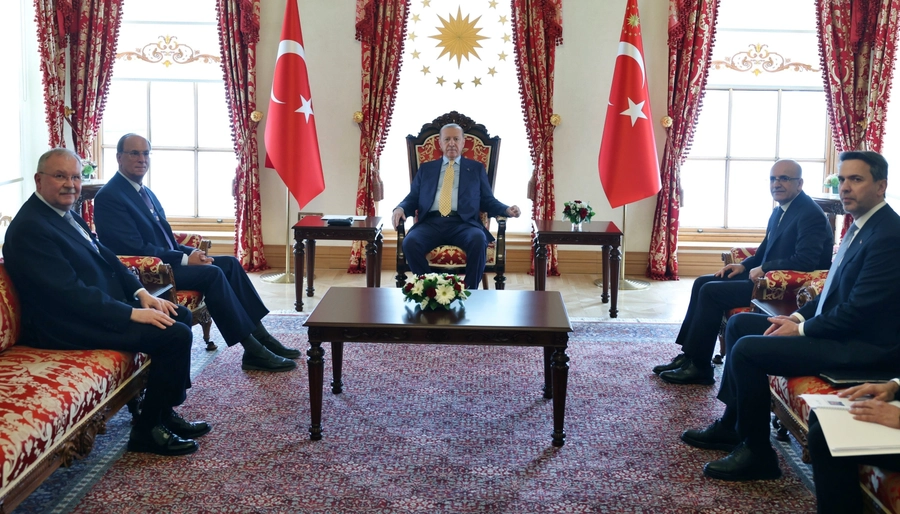 Erdoğan, BlackRock CEO’su Larry Fink ile kapalı kapılar ardından görüştü. Tüm saray erkanının tam kadro katıldığı bu önemli toplantıda, Hazine ve Maliye Bakanı Mehmet Şimşek de ekonomik istikrar ve makroekonomik politika alanında kapsamlı bir sunum gerçekleştirdi.