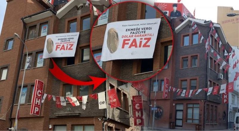 CHP Eskişehir İl Başkanlığı'nın Akarbaşı Mahallesi Pilot Sokak'taki binasının 3'üncü katına, döviz garantili TL mevduat hesabı uygulamasını protesto etmek amacıyla dün bir pankart asıldı. Bir ekmek görselinin yer aldığı ve üzerinde 'Faizci kazanacak, millet ödeyecek. Ekmeğe vergi, faizciye dolar garantili faiz' yazan pankart, gece saatlerinde söküldü.