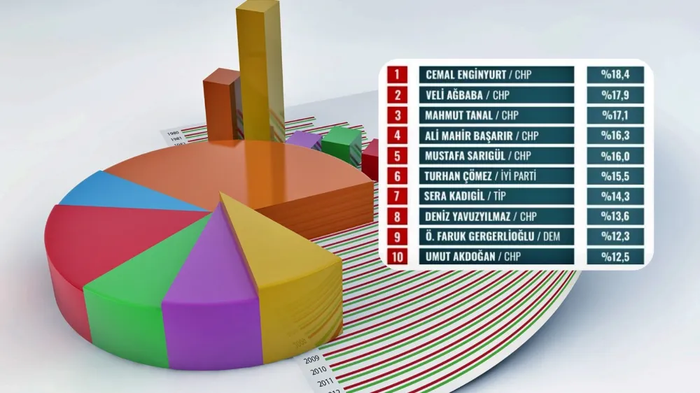 Listenin ilk sırasında yüzde 18,4’lük oranla Demokrat Parti İstanbul Milletvekili Cemal Enginyurt yerini aldı. Daha sonra yüzde 17,9 ile CHP Malatya Milletvekili Veli Ağbaba ve yüzde 17,1 ile CHP Şanlıurfa Milletvekili Mahmut Tanal takip etti.