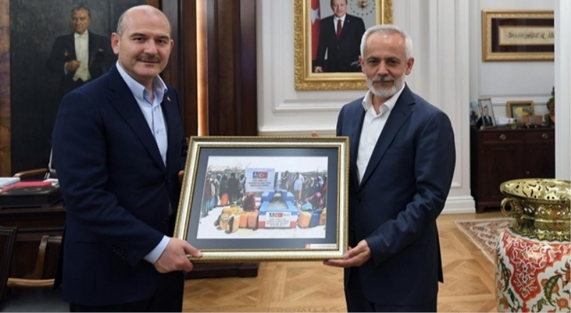 Diyarbakır’da şehit edilen “Özel harekat Polisi” Ahmet Alp Taşdemir için Somali’de açılan su kuyusu resmide görüşmede bakan Soylu’ya takdim edildi.