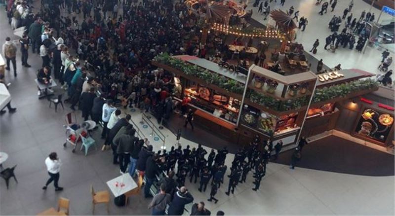 “We need hotel! / Otele ihtiyacımız var!” sloganları sonrası havalimanına Çevik Kuvvet polislerinin geldiği görüldü.