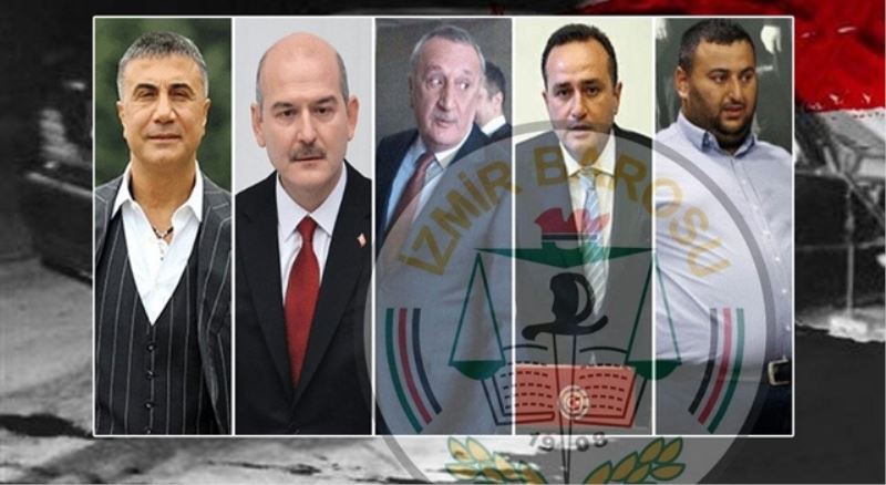 İzmir Barosu, organize suç örgütü lideri Sedat Peker'in 7 ayrı videoda belirttiği hususlarla ilgili olarak, Sedat Peker, Süleyman Soylu, Mehmet Ağar, Tolga Ağar, Erkan Yıldırım ve videolar incelenip gerekli araştırmalar yapıldığında savcılıkça tespit edilecek diğer kişiler hakkında suç duyurusunda bulundu.
