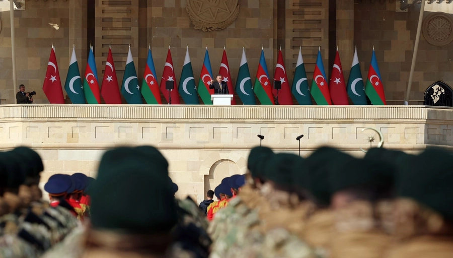 Erdoğan, “Karabağ’ın azatlığa kavuşması sadece Azerbaycan için değil, Türk dünyası için de büyük bir gurur vesilesidir” diyerek, Azerbaycan ordusunun Karabağ’da attığı her adımın Türk tarihine şeref nişanesi olarak yazıldığını belirtti. “Bugün burada Azerbaycan askeri, Türkiye’den gelen asker kardeşleriyle omuz omuza” ifadesiyle iki ülke arasındaki askeri iş birliğine vurgu yaptı.