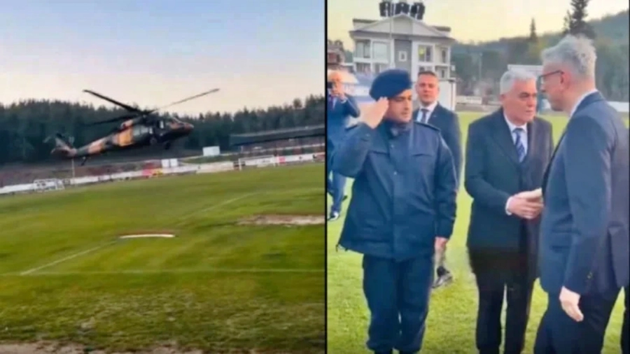 Muğla’nın Seydikemer ilçesinde bir halk iftarına katılım gösteren Sağlık Bakanı Kemal Memişoğlu, Mehmet Günay Stadı’na askeri helikopterle iniş yapması dikkat çekti. Bakanı taşıyan helikopterin görüntüleri gündeme damga vurdu.
