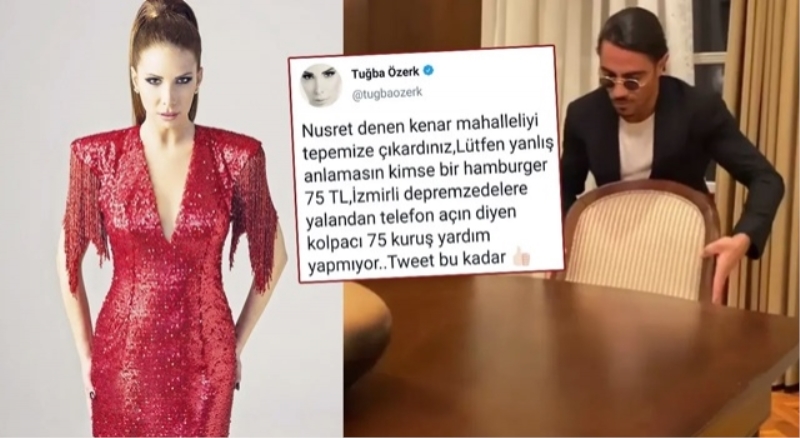 Şarkıcı Tuğba Özerk, ünlü işletmeci Nusret Gökçe ile ilgili yaptığı paylaşımla gündeme geldi. Özerk, Nusret'in İzmirli depremzedeler için telefon numarasını paylaşıp, 'Beni arayın' demesine tepki gösterdi.