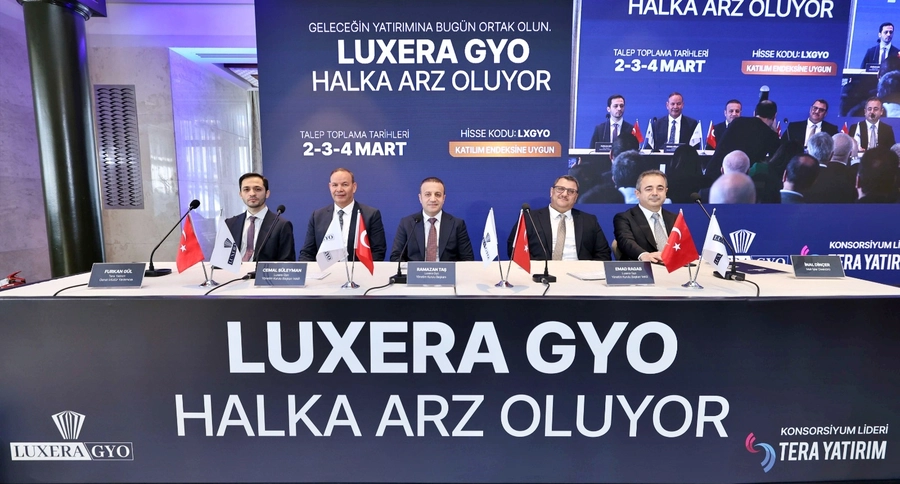 Türkiye’nin önde gelen gayrimenkul şirketlerinden Luxera GYO, konut sektöründeki birikimini sermaye piyasalarına taşımaya hazırlanıyor. 7 milyar TL’yi aşan portföy büyüklüğüne sahip şirketin halka arzında talep toplama tarihleri, 2-3-4 Mart olarak belirlendi. Luxera GYO, Tera Yatırım liderliğinde gerçekleşecek olan halka arzın detaylarını ve gelecek dönem planlarını düzenlediği bir basın toplantısıyla paylaştı. Toplantı Luxera GYO Yönetim Kurulu Başkanı Ramazan Taş, Yönetim Kurulu Başkan Vekili Emad Ragab, Yönetim Kurulu Üyesi Cemal Süleyman ve Tera Yatırım Genel Müdür Yardımcısı Furkan Gün’ün katılımıyla gerçekleştirildi.