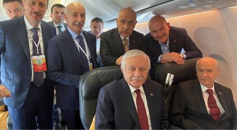 MHP Genel Başkanı Devlet Bahçeli ile yolculuk yapan Süleyman Soylu, uçaktan poz verdi.