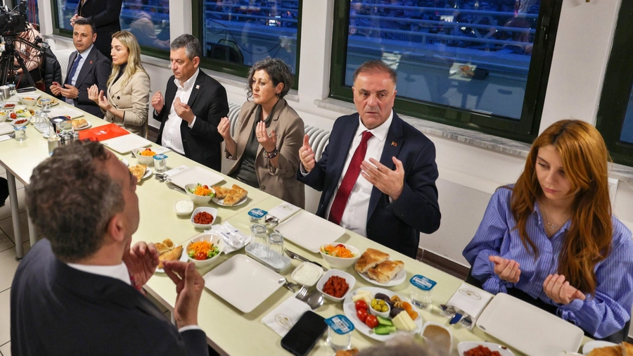 CHP Genel Başkanı Özgür Özel, ramazan ayının son iftarını İBB bürokratları, belediye meclis üyeleri, tutuklu yakınları ve İstanbul parti örgütüyle birlikte Saraçhane’de yaptı.