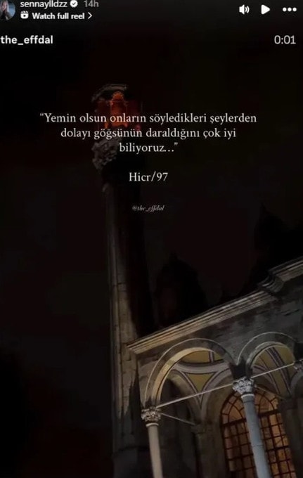 Testi pozitif çıkan Mümine Senna Yıldız, kararın ardından sosyal medya hesabından Hicr Suresi 97. ayeti paylaştı: