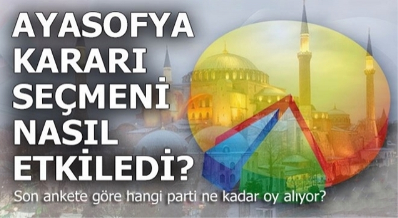 Korona virüsün gölgesinde gerçekleştirilen Ayasofya’nı açılışı tartışmaları da beraberinde getirmişti. Açılışın ardından yapılan son anket sonucunda ise AKP, CHP, İYİ Parti, HDP, MHP, Deva Partisi ve Gelecek Partisi'nin son oy oranları dikkat çekti.