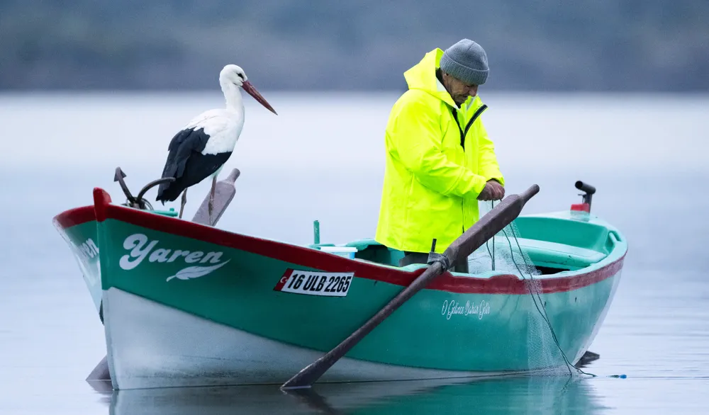Nazlı zannedilen leylek, bu sabah göle açılan Yılmaz'ın kayığına konunca Yaren olduğu ortaya çıktı. O anlar, yaban hayatı fotoğrafçısı Alper Tüydeş tarafından görüntülendi.