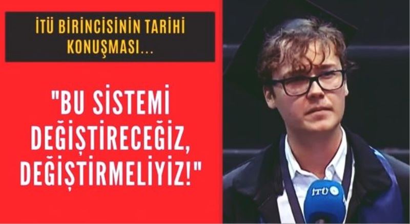 Mezuniyet törenindeki konuşmasına 'Çünkü bizler insan olmayanların elinden fazlasıyla çektik' diyerek başlayan İşletme Mühendisliği bölümü mezunu Hüseyin Umutcan Ay, 'Bizler ve bizim yetiştireceğimiz çocuklar hegemonların elinde yozlaşmış bu sistemi değiştireceğiz. Değiştirmeliyiz' dedi.