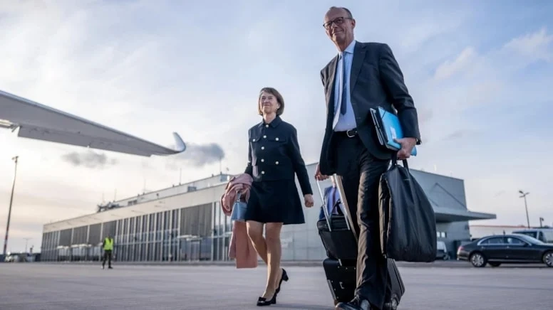 Merz, Türkiye'nin hakim olmadığı şekilde; bir elinde bavulu diğer elinde dosyaları ve labtobu ile Türkiye'ye geldi. Merz'in eşyalarını hem uçağa binerken hem de uçaktan inerken yine Merz taşıdı.