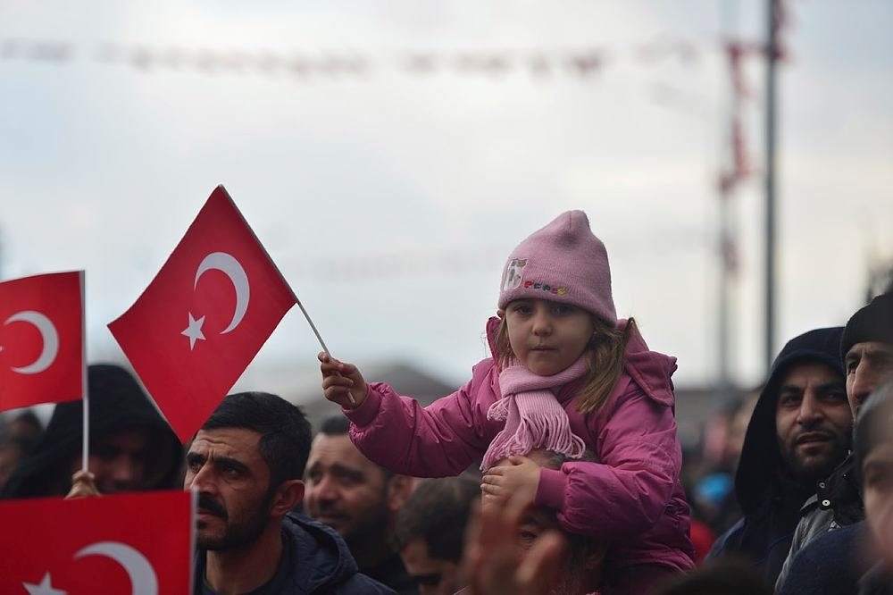 Dünyada her 5 mülteciden 1 tanesi Suriyeli. Elhamdülillah Türkiye Suriye'yi terk etmek zorunda kalan 5 mülteciden 3'üne ev sahipliği yapıyor. Bundan gurur duyuyoruz. 2011'den beri devam eden savaşta 500 bin Suriyeli kardeşimiz hayatını kaybetti. 2 milyondan fazlası yaralandı. Bu ağır bir zulümdür. Bu adeta bir milleti bir medeniyeti yok etmektir. Güçlü ülkeler ne yazık ki adaletin yanında yer almaktansa zulmün yanında yer almıştır. Öldürülen insanlar yıkılan binalar, bunların delilidir. Her gün haberler bu felaketleri göz önüne seriyor. Sözde güçlü ülkeler bu konuda sus pus. Şunu açıkça söylüyorum. Hiç kimse yoksa biz varız, Türkiye var. Tayyip Erdoğan var. 80 milyon Türk milleti var' dedi.