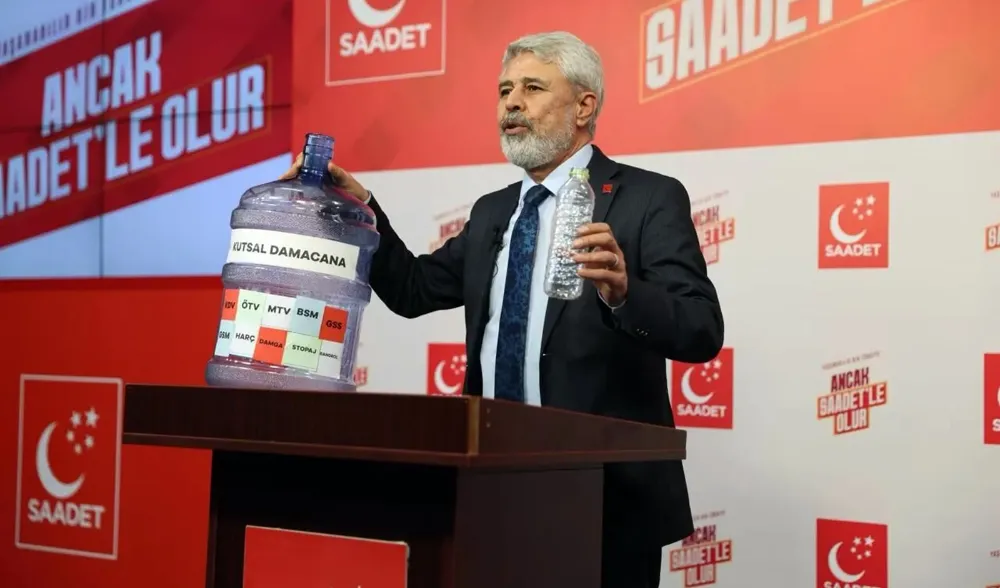 Saadet Partisi Genel Başkan Yardımcısı Mustafa Yılmaz, partisinin genel merkezinde düzenlediği basın toplantısında hükümetin 2026 yılı bütçesini eleştirdi. Yılmaz, kürsüye bir damacana ile çıkarak bütçeyi “Kutsal Damacana” olarak nitelendirdi ve “Bu bütçeden sadece bankalar ve kankalar kârlı çıkacak” dedi.