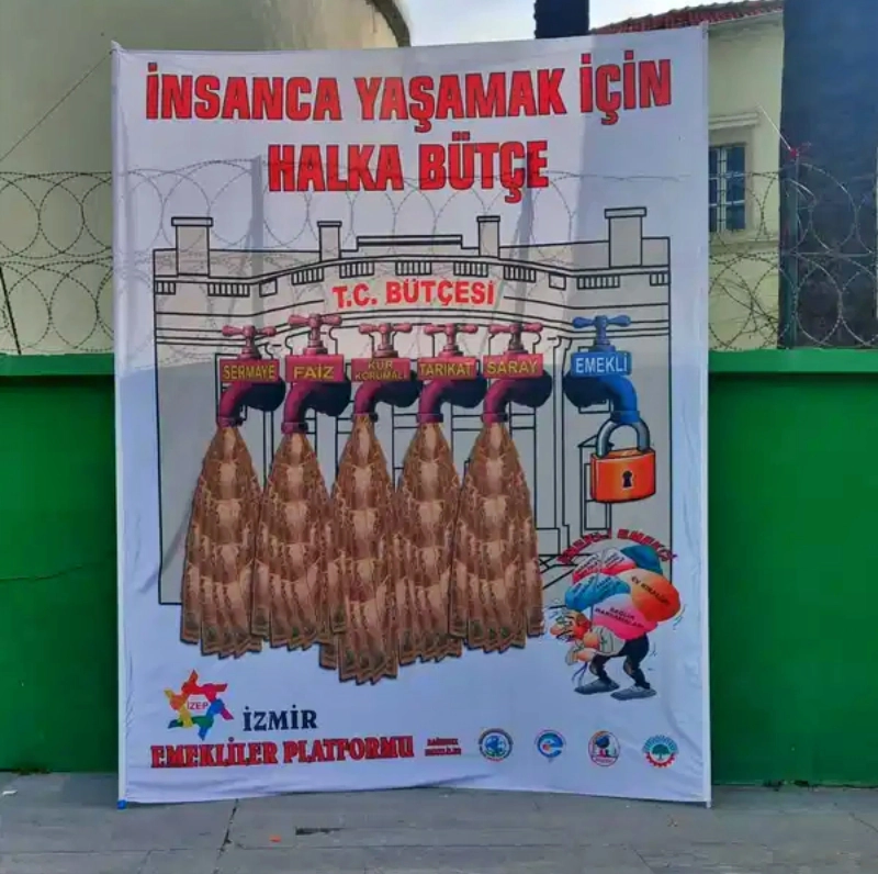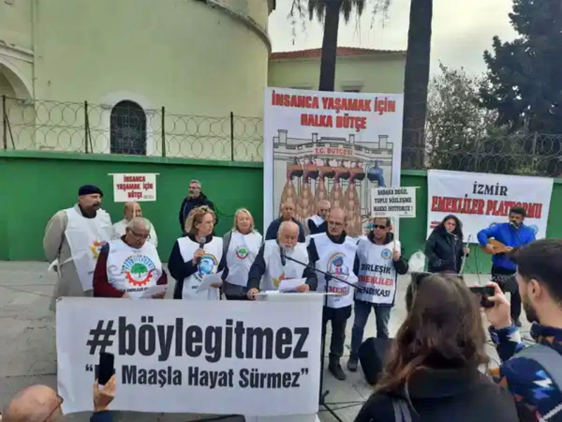 İzmir Emekliler Platformu, taleplerini de sıraladı; "Emekli aylıklarının yoksulluk sınırının altında olması kabul edilemez. Bütçe, sermayeden değil emekten yana hazırlanmalıdır. Emeklilerin yaşam koşulları insanca bir düzeye kavuşturulmalıdır. Sağlıkta katkı payları kaldırılmalı, parasız sağlık herkes için hak olmalıdır. Emekli sendikaları anayasal güvenceye kavuşturulmalıdır. 3600 ek gösterge herkese uygulanmalıdır. Adil, eşit ve demokratik bir bütçe hazırlanmalıdır. İntibak yasası derhal çıkarılmalıdır."